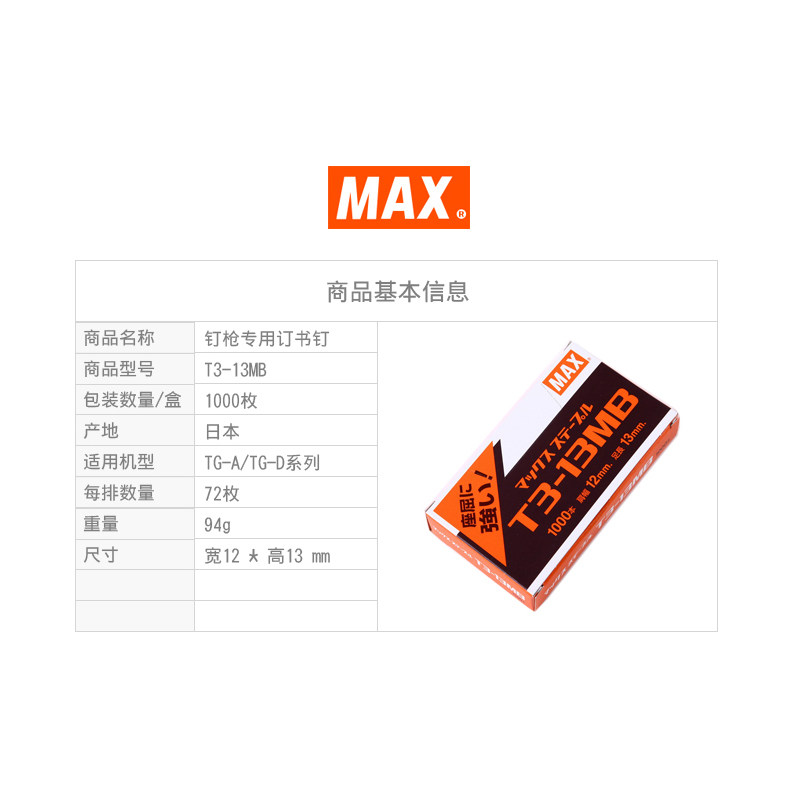 Японский максимальный макс импортированная гвоздь Специальное бронирование сценария Бронирование иглы TG-A TRE TG-D NAIN GUIN 1000 NAILS/BOX T3-13MB