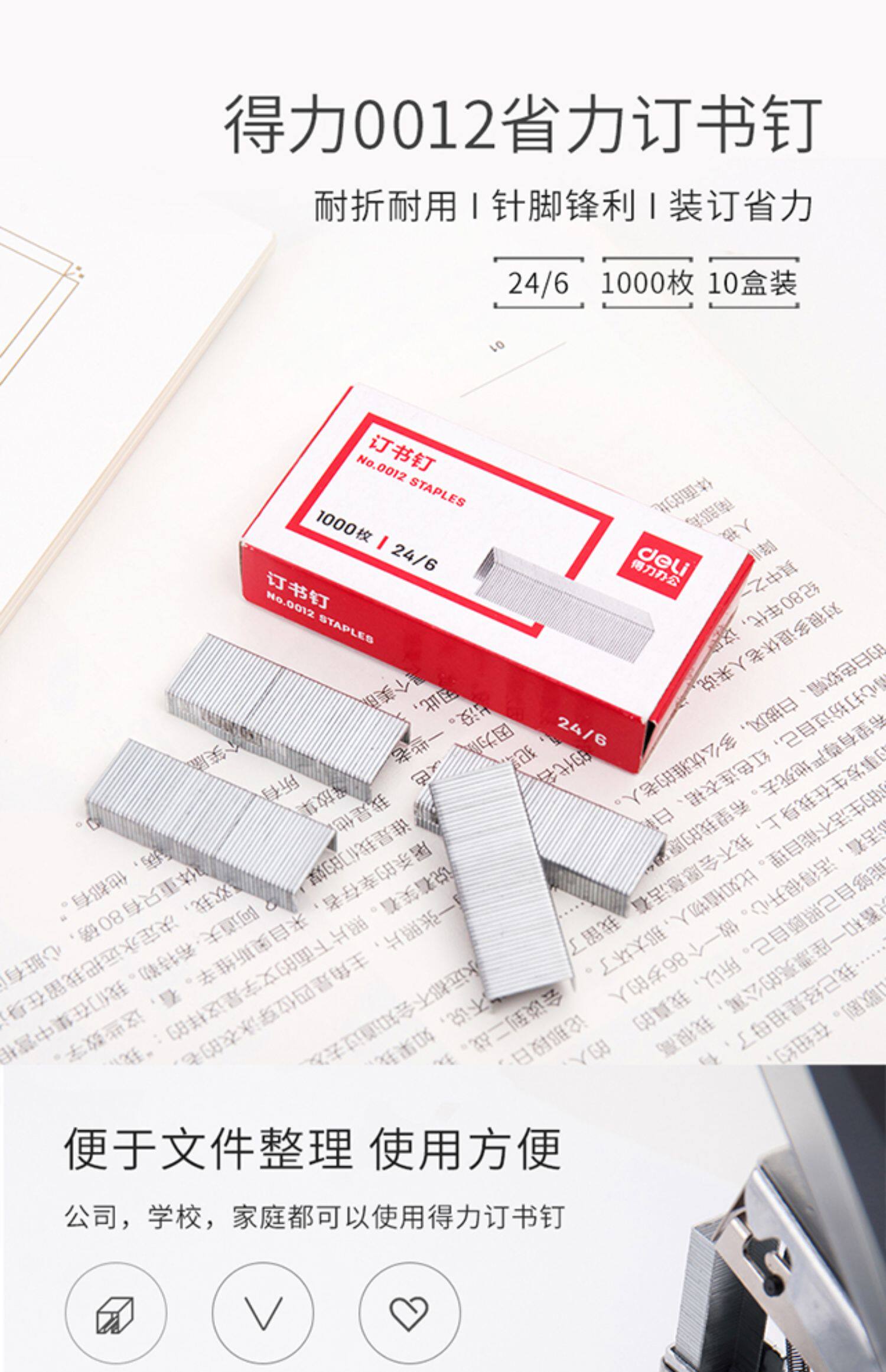 Бесплатная доставка Deli № 12 Бронирование книги гвоздь 24/6 Общий стандартный стандартный бронирование иглы 0012 из нержавеющей стали гвоздь гвоздь.