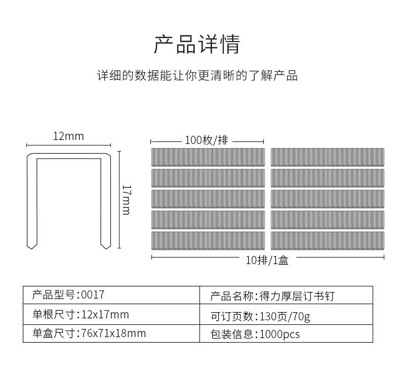 Deli 130 страниц Бронирование [1 коробка] 0017 Машина для бронирования тяжелых типов Специальное бронирование иглы 23/17 Официальные продукты канцелярских товаров Официальный тип общего стандарта [1 коробка]