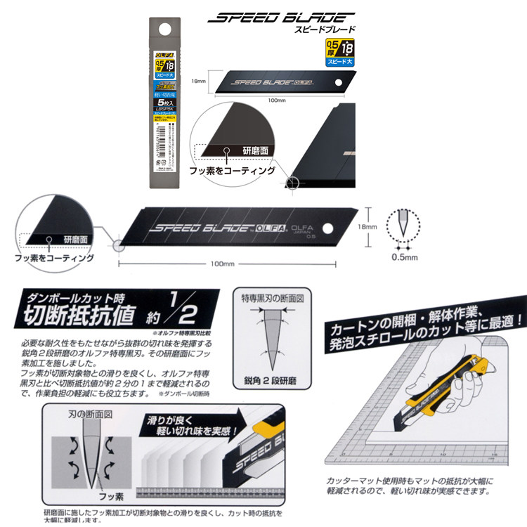 Олфа Элихуа LFB-5B крупномасштабное фторид быстрое черное лезвие Blade Blade Black Blade 5 штук 18 мм