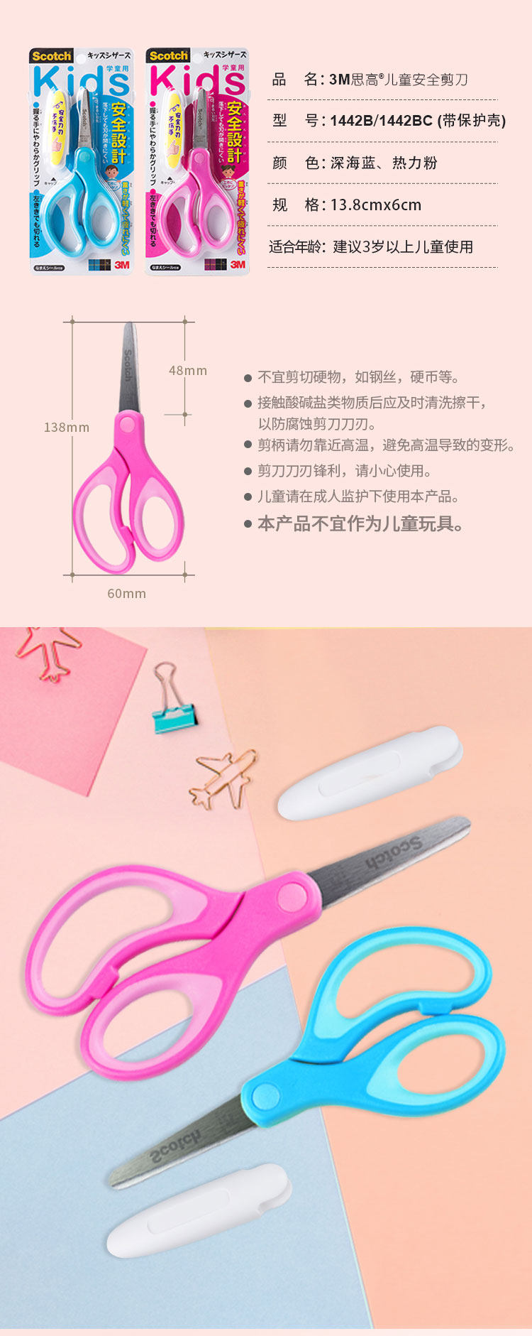 3M Детские безопасные безвредные ножницы, маленькие художественные поделки из бумаги ручной работы из нержавеющей стали для школьников и студентов, детский пластиковый комплект для детского сада, 5 дюймов