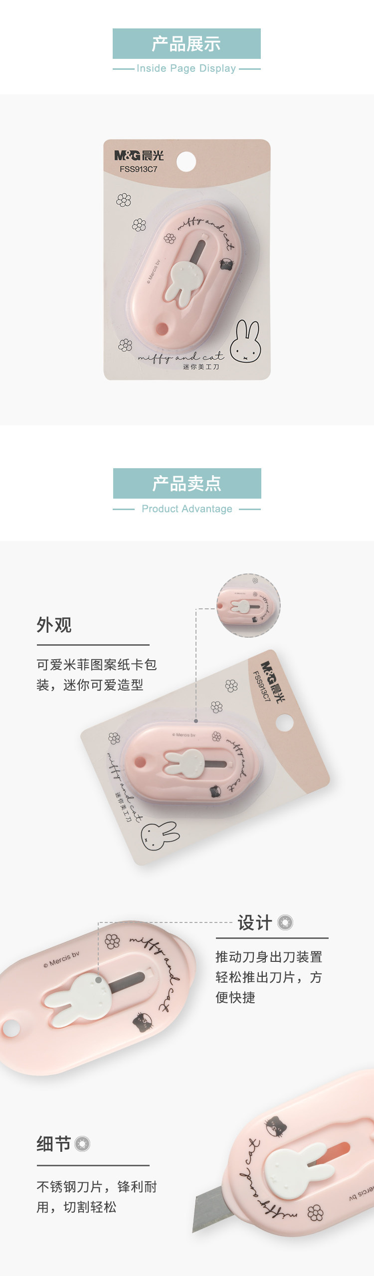 Ченгуанг красивый гонг -нож Mi fei и кошачий мини -гонг нож маленький нож маленький и милый, легко носить коробку для открытия ножа, бумага, бумага для студента ручной работы.
