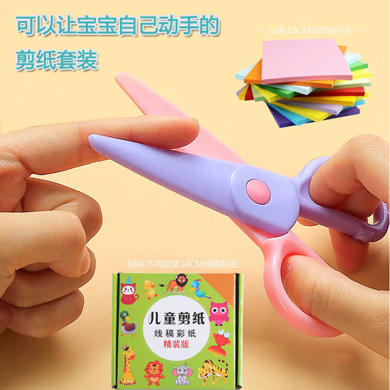 Детские безопасные ножницы ручной работы для детского сада, поделки из бумаги, оригами, комплект, детская безвредная мультяшная пластиковая игрушка для школьников и студентов, 3-10 лет