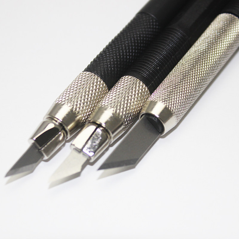 Особенности: Перочинный нож состоит из двух секций. Лезвие можно заменить после отвинчивания переднего конца, а задняя часть имеет форму ствола ручки, что позволяет легко удерживать ее.На передней и задней частях перочинного ножа имеется противоскользящая секция, предотвращающая его соскальзывание из-за чрезмерного усилия во время использования.Наклон лезвия в 30 градусов больше подходит для резки бумажных моделей и мелких деталей.