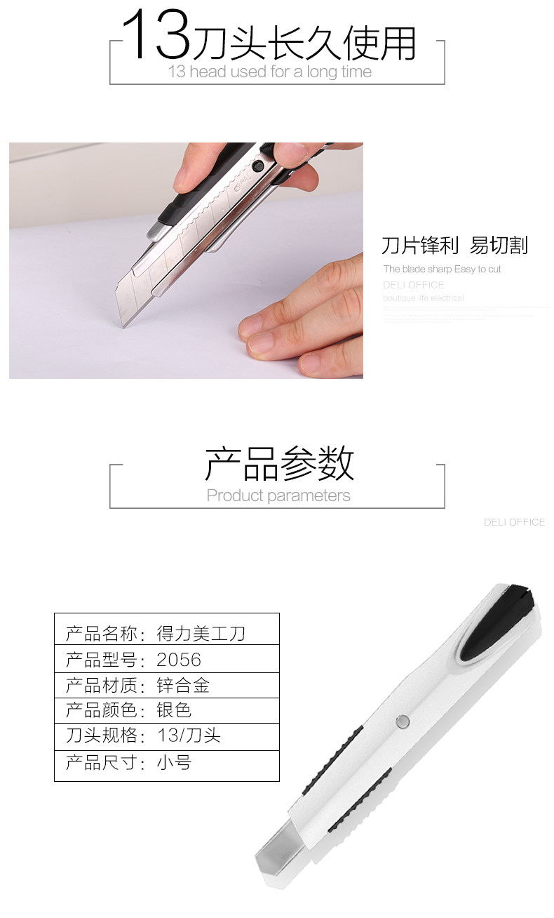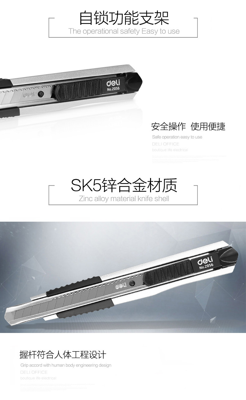 Бесплатная доставка Deli 2056 Небольшой высококачественный нож для ножа цинка, связанный с цинком, металлический нож, нож, нож, пленка, 9-мм лезвие