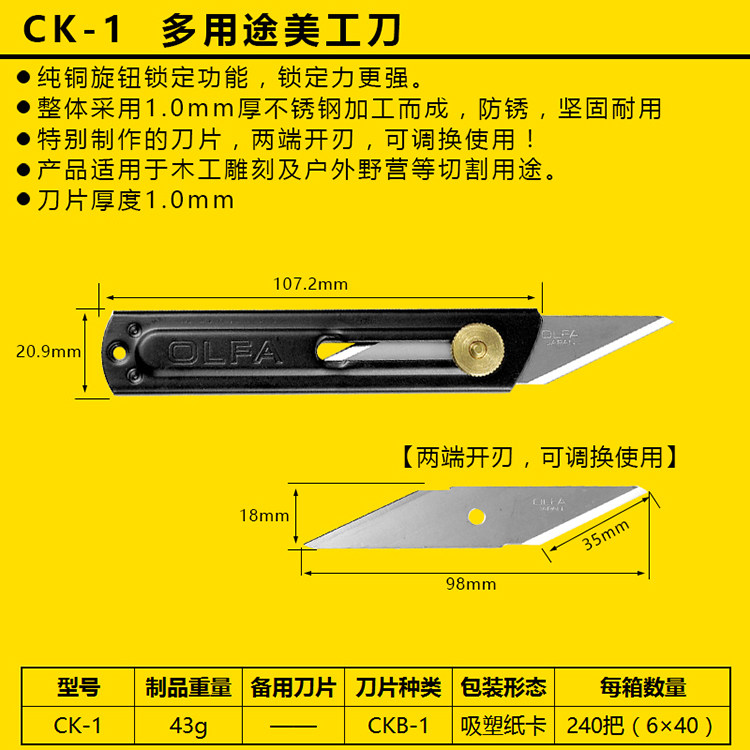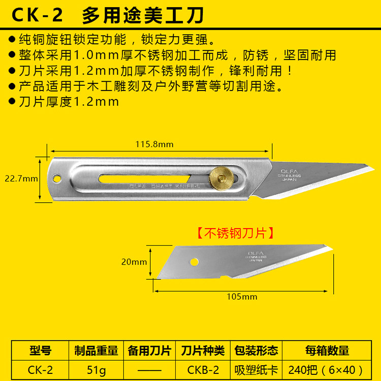 - CK-1: носка для нож из нержавеющей стали, кончики лезвия с высоким содержанием углерода, лезвие толщиной 1,0 мм, лучше при резке