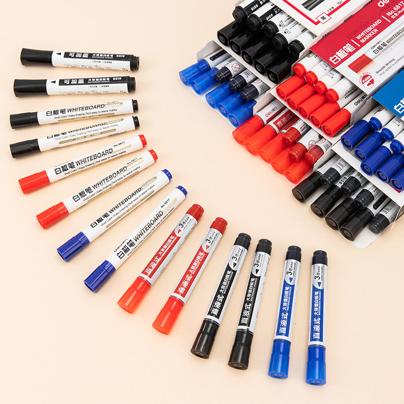 Deli 6817 Whitebord Pen Black Water Boits можно потер с помощью чернила Big Head Red Blue Black Beboard, чтобы написать 10 ударов