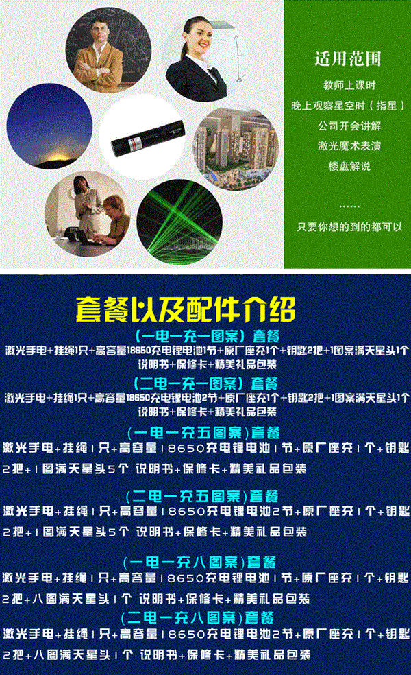 - Зеленый свет [черный внешний вид] одна мощность и одна заряжая 5 картин+коробка
