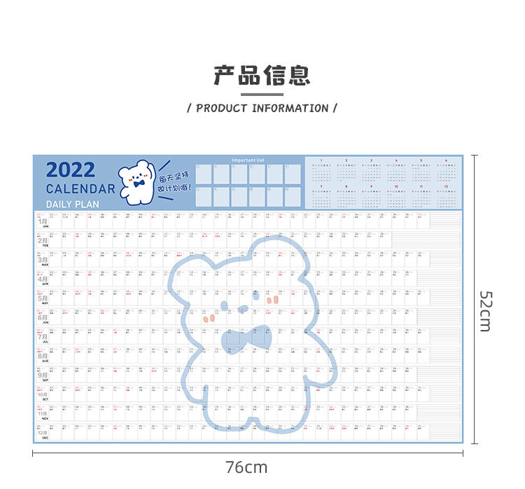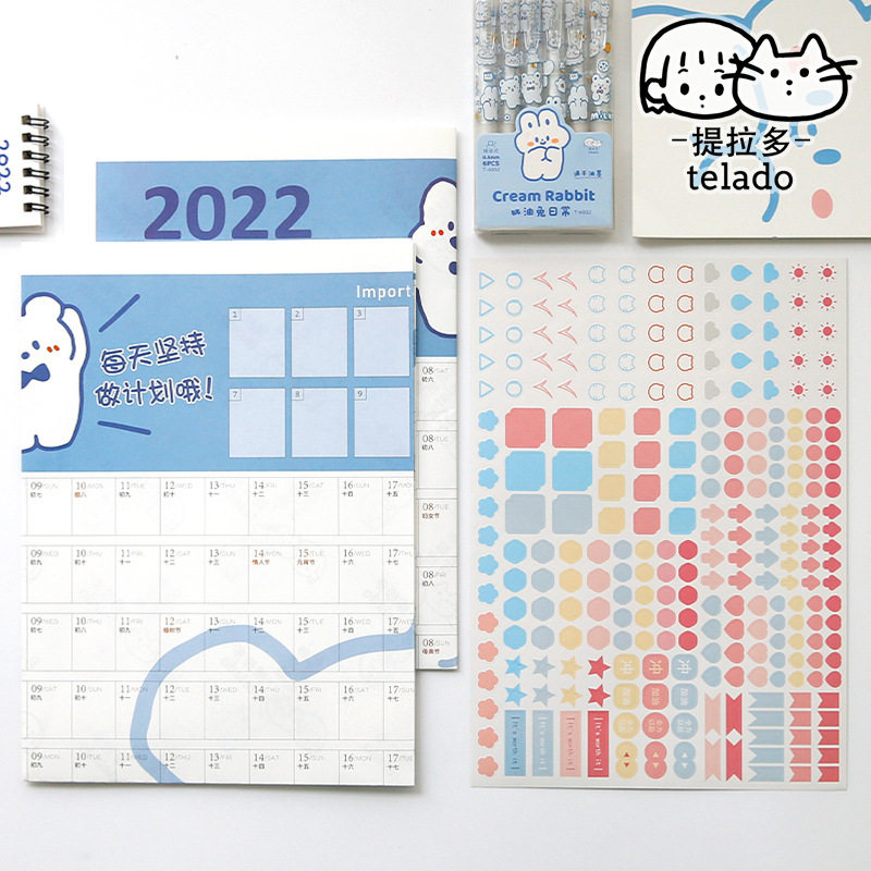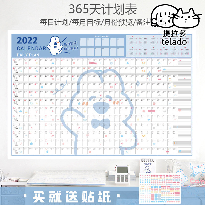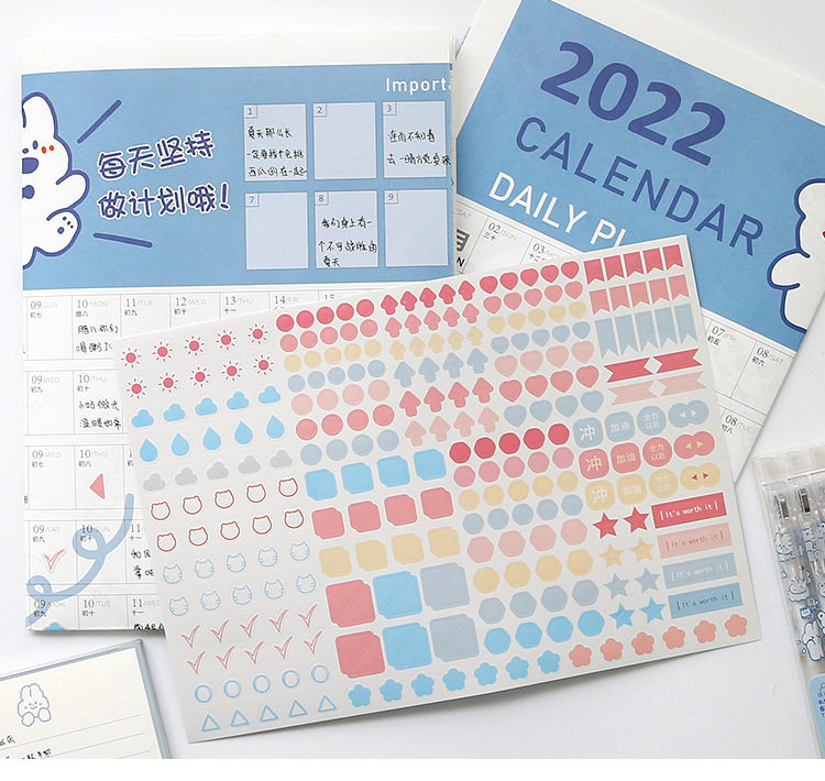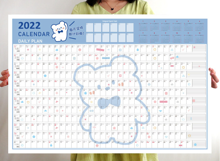 Подтягивающий календарь на стену, наклейка, 2022, расписание