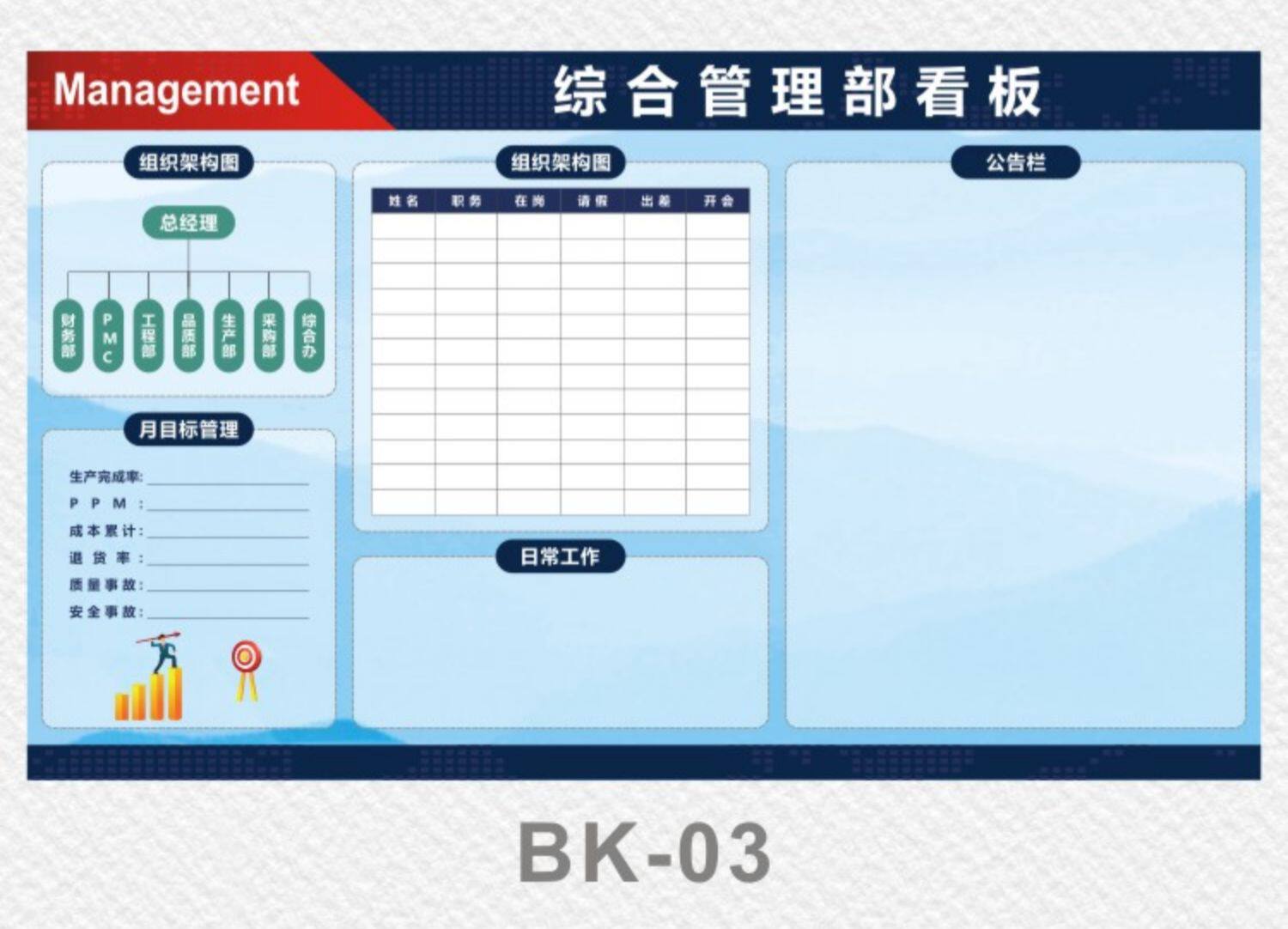 | Цвет: | Табло управления персоналом RY-01 белое, Табель учета рабочего времени сотрудников RY-02 белый, Список назначения персонала RY-03 белый, Список выбытия персонала компании RY-04 Белый, Список назначения персонала RY-05 белый, Доска объявлений Отдела общего управления KB-03 Синяя, Календарь на месяц RY-07 Белый, Объявление об уходе сотрудника RY-08 Белый, Список назначения персонала RY-09 белый, Список назначения персонала RY-10 белый, Форма оценки посещаемости сотрудников RY-11 White, Знак управления качеством производственного цеха RY-12 белый, Знак управления производством РИ-13 белый, График RY-14 белый, Список исполнений RY-15 Оранжевый, Комплексная панель управления КБ-01 красная, Управление планированием производства цеха Канбан КБ-02 синий, Доска объявлений для персонала, белая, Знак назначения персонала белый, Список пунктов назначения персонала белый, Индивидуальная справочная цена. Свяжитесь со службой поддержки клиентов для получения предложения. |