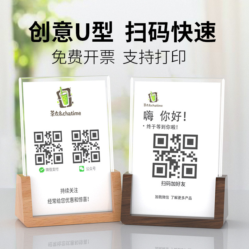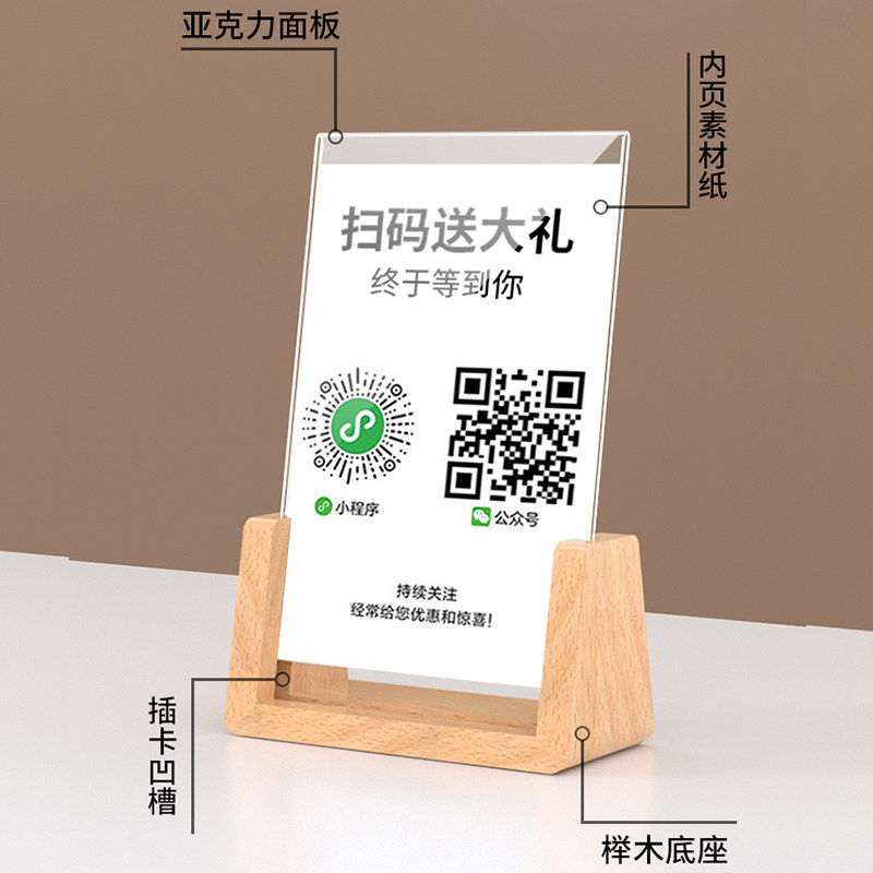Сплошная деревянная QR -код полученная карта Постоянная карта Дисплей знак Scan Code Cod