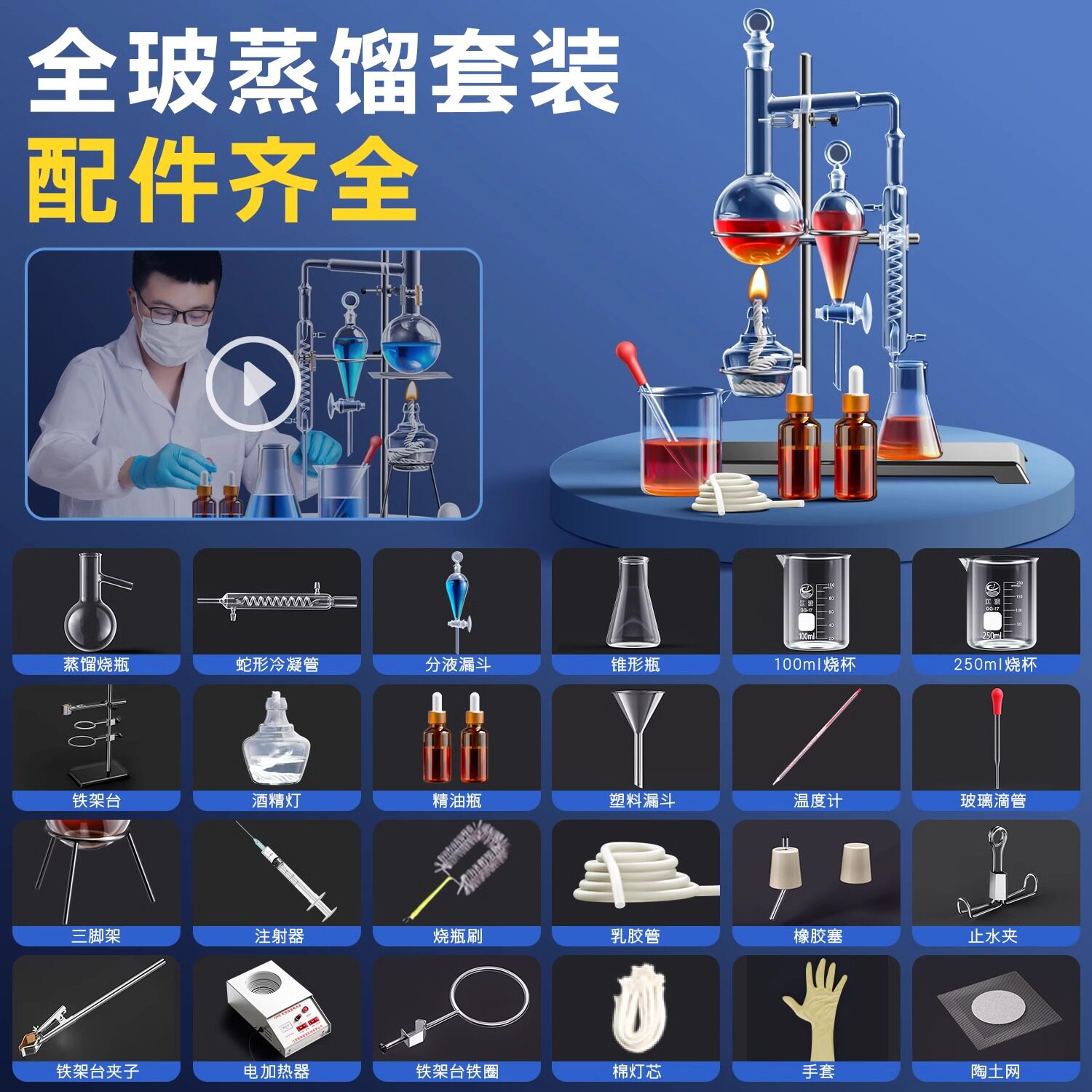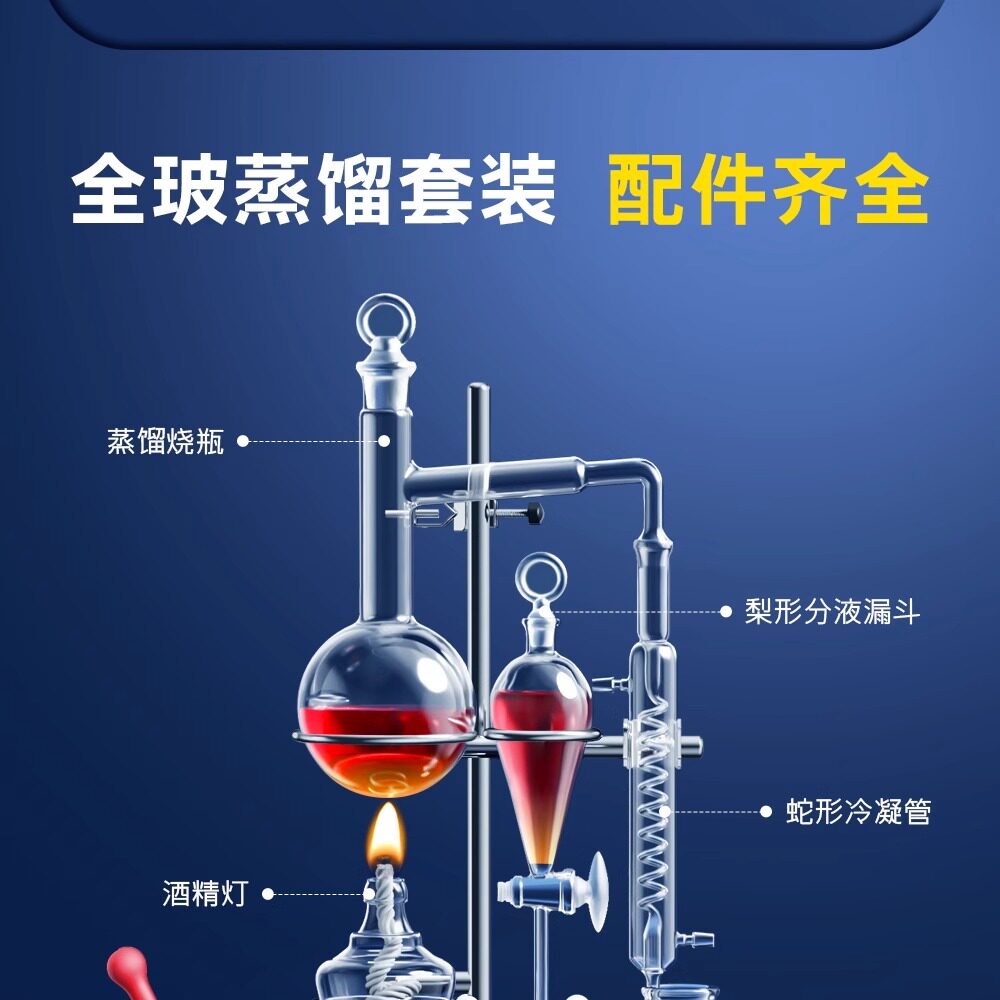 Устройство дистилляции, полная стеклянная лепестка для очистки воды для очистки воды, устройство дистилляции и экстракции, химическое оборудование, лаборатория, трубка конденсации в форме змеи, дистилляционная колба, добыча росов