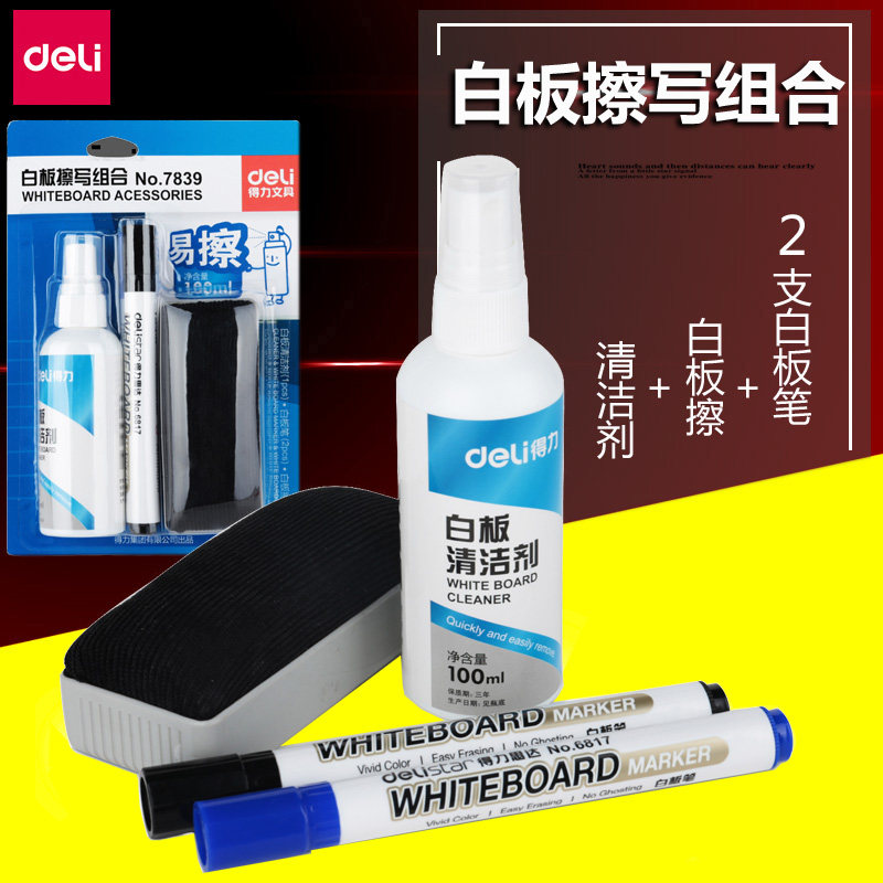 Deli 7839 Whatebord Ruging Perboard Pen and Whatebord Cleaner Suits White Class Rust Письмо сочетание карты щетки для белой доски бесплатная доставка