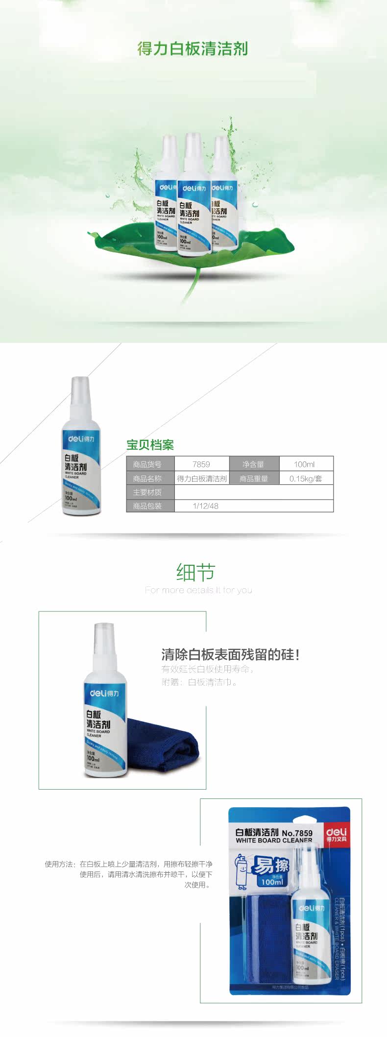 Deli 7859 Whatebord Cleaner Suite Beatebord Brabboard Swieb Wike Suit