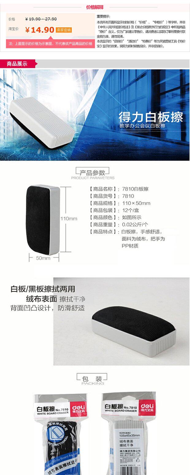 Deli 7810 Белая доска 擦 Легко вытирать доску для рисования, потирая белую доску, потирая офисную ручку доски, 3 инсталляции