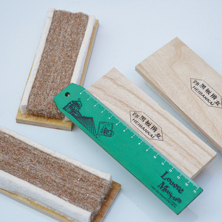 Липкие волосы на доске потирают доску, потирая мелки, потирая белую тарелку, без пыльную доску, мел, потирая зеленую тарелку, промоушена