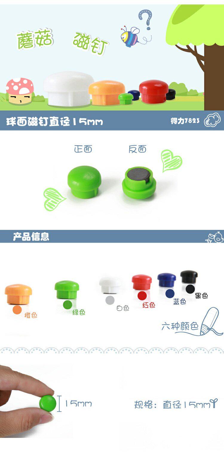 Deli 7823 Цветные магнитные ногти Поглощение железного камня Белая доска магнитная шарика Магнитная офис поставляется с фиксированной магнитной пряжкой.
