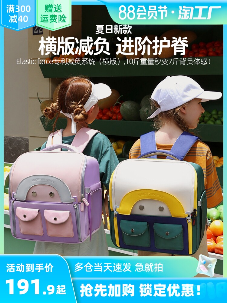 Школьный рюкзак, высококачественная вместительная и большая детская милая сумка через плечо со сниженной нагрузкой, ранец, коллекция 2023, защита позвоночника, горизонтальная версия