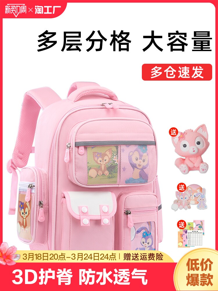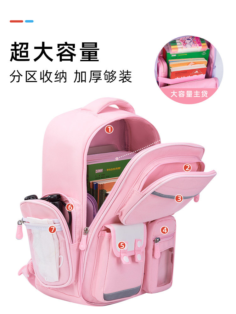 Ранец, высококачественная вместительная и большая милая розовая водонепроницаемая сумка через плечо со сниженной нагрузкой, 3-6 года, защита позвоночника