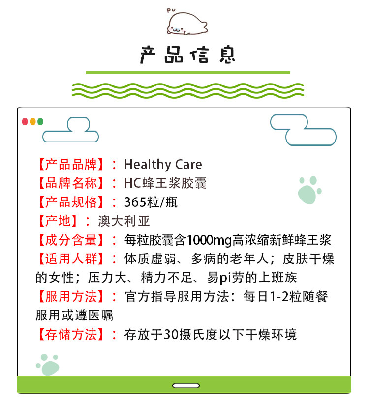 Spot Australia Healthy Care Care Pece Royal Pool Capsule Capsule Император Jelly 365 Капсулы 1000 мг HC Royal Jelly
