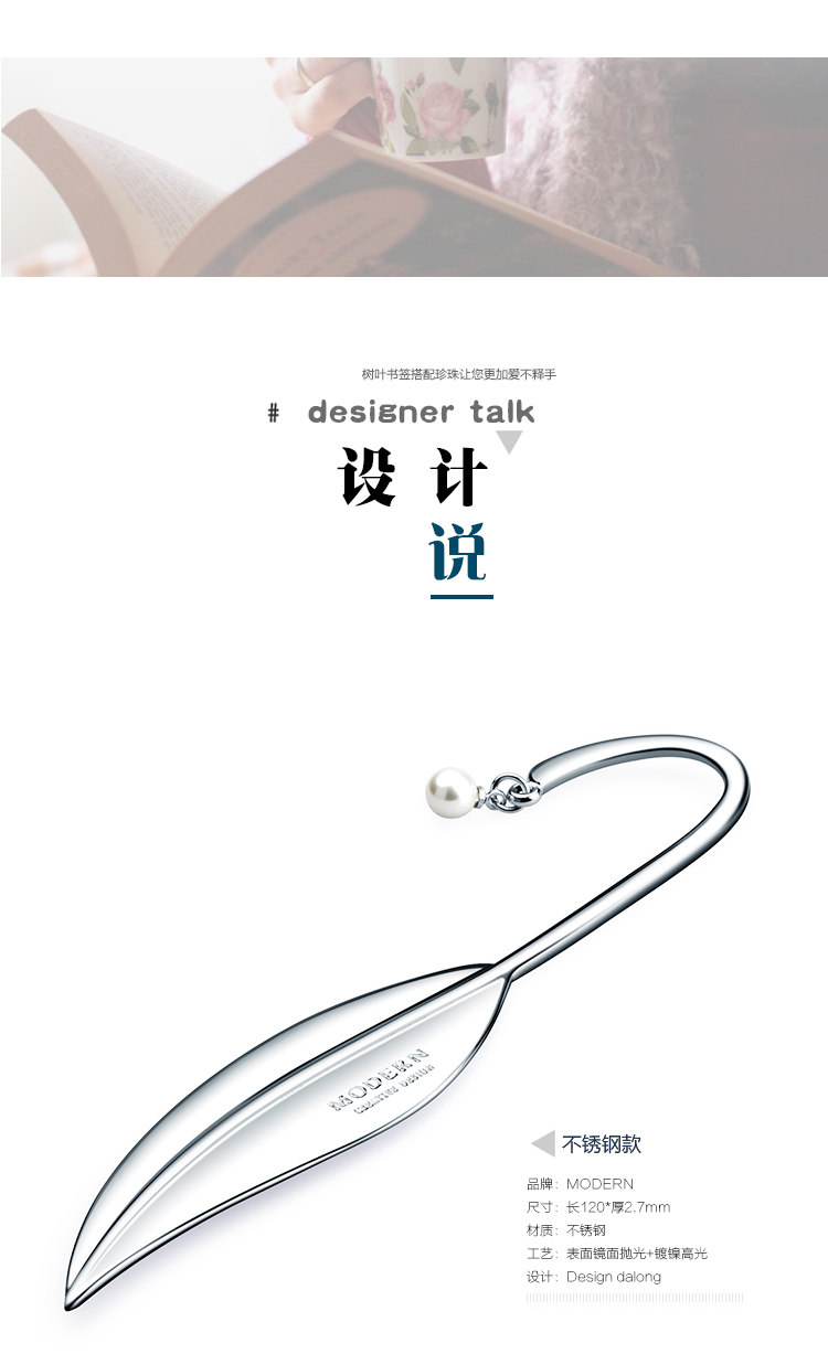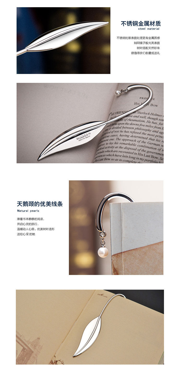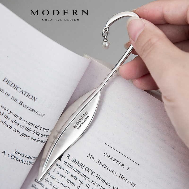 Немецкий современный лист закладка творческая металлическая нержавеющая сталь/чистая серебряная жемчужная закладка на заказ выпускной подарок