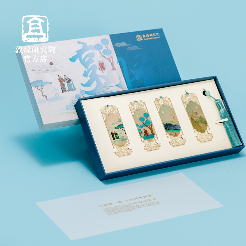 敦煌研究院 Четыре часа живописной сцены · Данхуанг фестиваль заказ металлический закладка, чтобы отправить подарочную коробку для закладки учителя, чтобы отправить учителя закладка в закладку