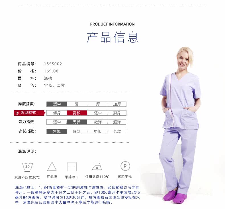 安诺 Униформа врача, раздельная униформа медсестры подходит для мужчин и женщин, поликоттон, V-образный вырез