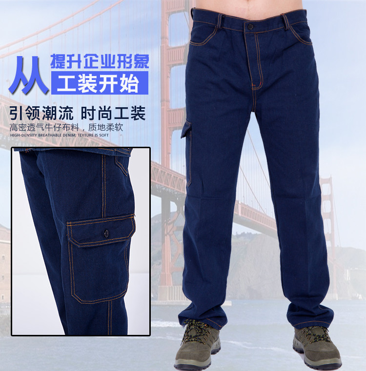 Мужские хлопковые износостойкие джинсовые штаны для работы, увеличенная толщина, защита от ожогов