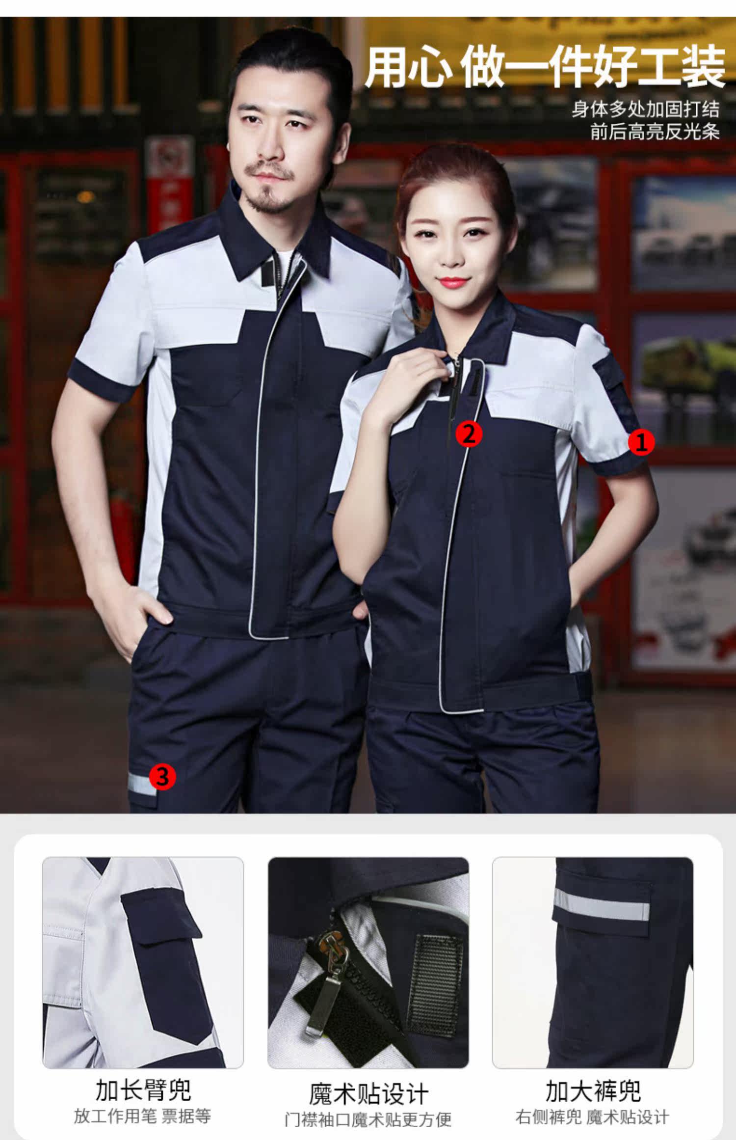 Летняя тонкая короткая -наставленная автоматическая ремонтная рабочая одежда набор мужская автомобиль красавица 4S Магазин Магазин Махта для стирки обслуживания рабочей машины Ремонт