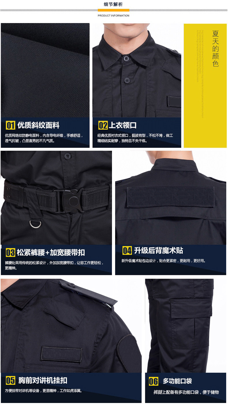 Осенняя летняя одежда для работы, черный лонгслив, летняя униформа, комплект, короткий рукав