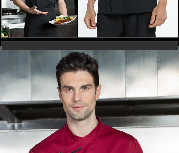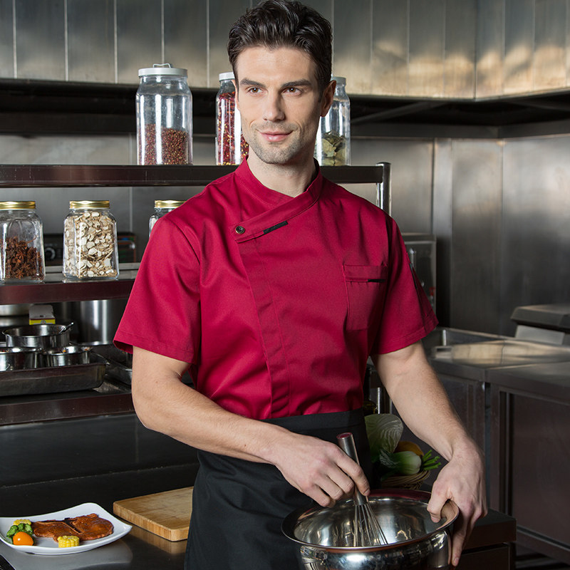 Красная наклона шеф -повара униформа с короткими рукавами рабочая одея