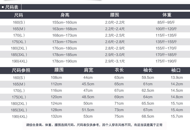 | Размер: | 160/S, 165/M, 170/L, 175/XL, 180/XXL, 190/4XL, 185/XXXL |