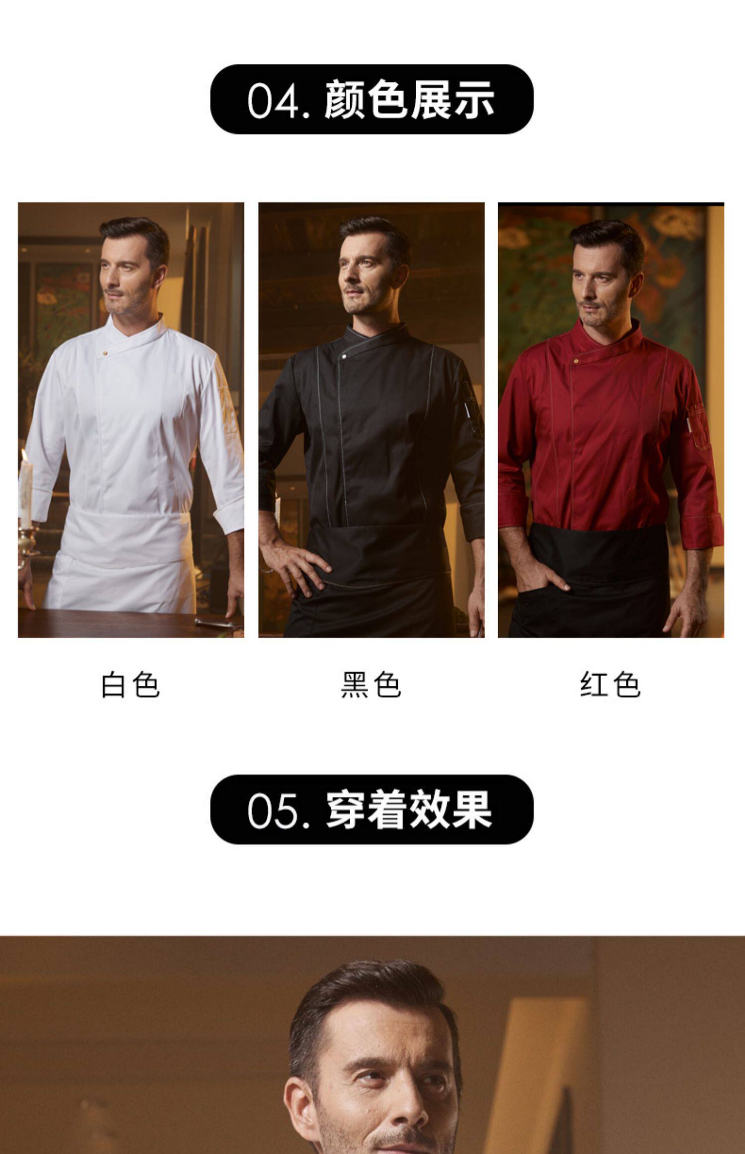 真耀 Шеф-повара рабочая одежда мужская одежда с длинными рукавами.