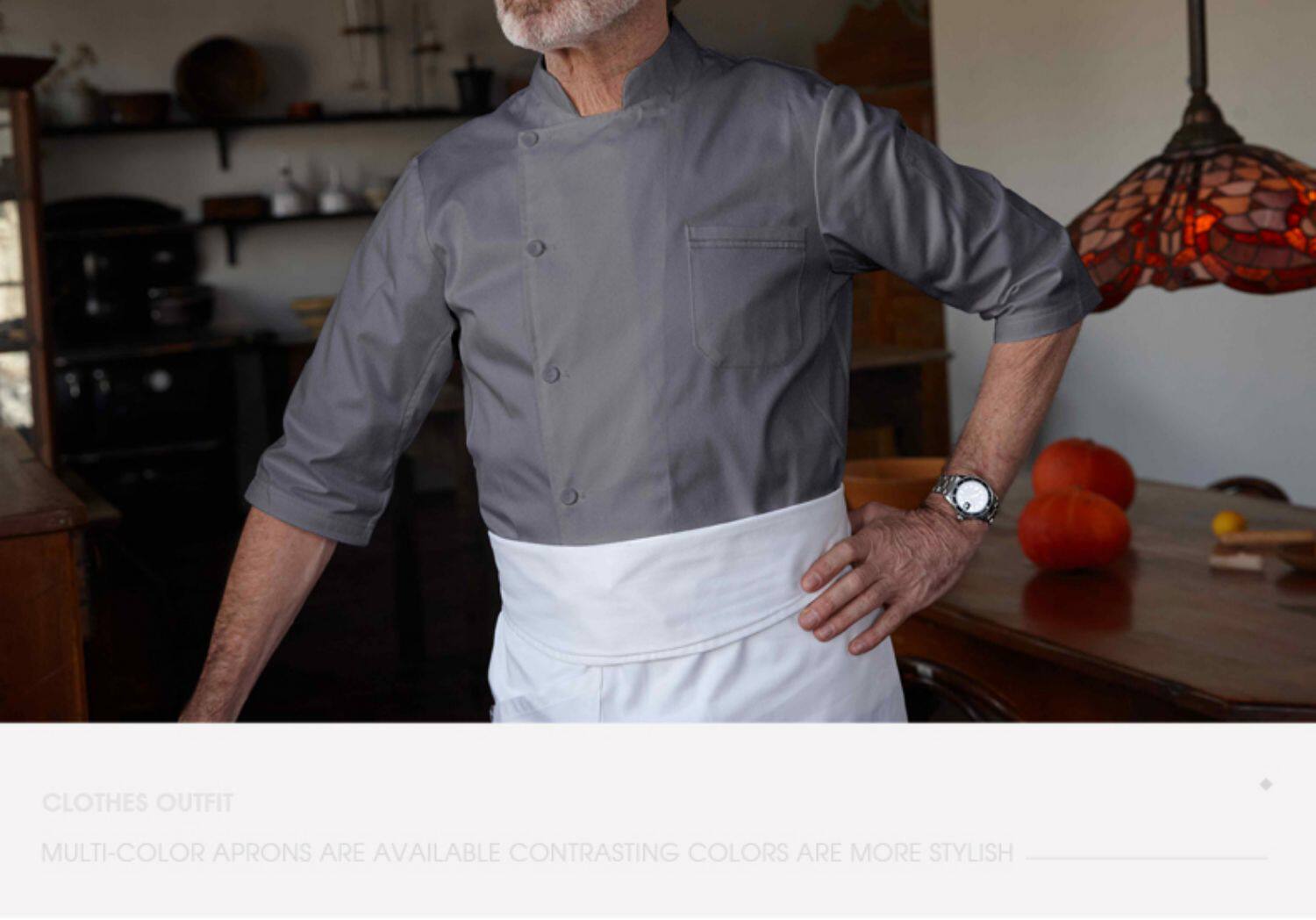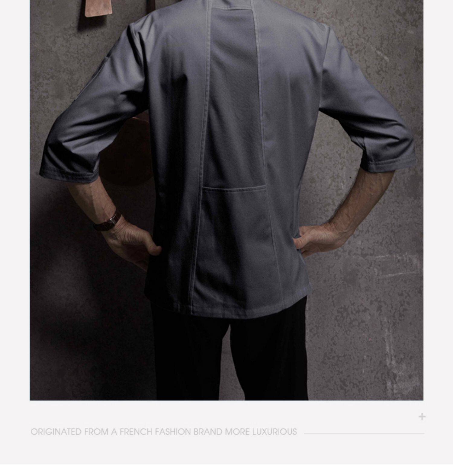 Шеф-повара серого риса для мужчин весна и летние три четверти рукава для выпечки гостиницы ресторан кухня Шеф-повар