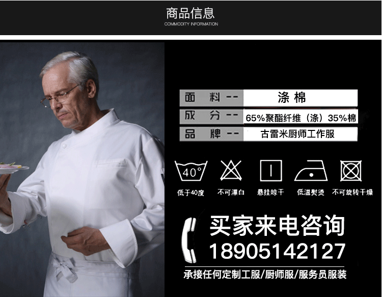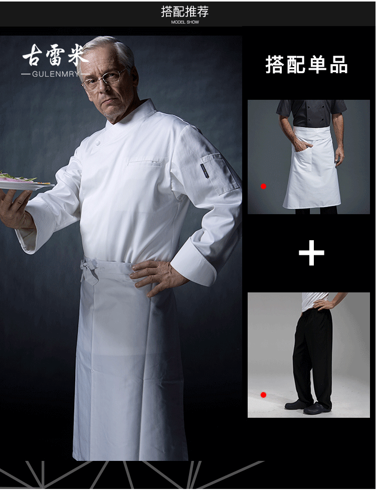 古雷米 Шеф -повар Long -sleemed Summer Hotel Restaurant Kitchen Western Restaurant Chef Chef High -Chef шеф -повар мужской белый хлопок