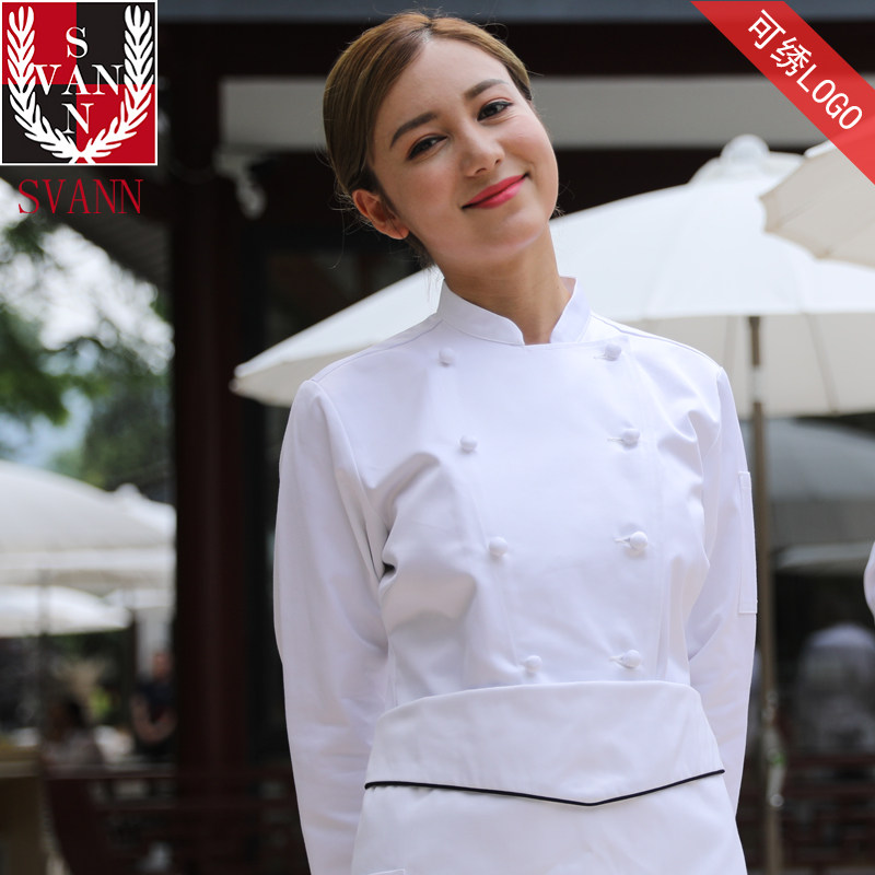 Шеф -повар Service Женский тонкий хлопок с двойным двойным двойным двойным звездами
