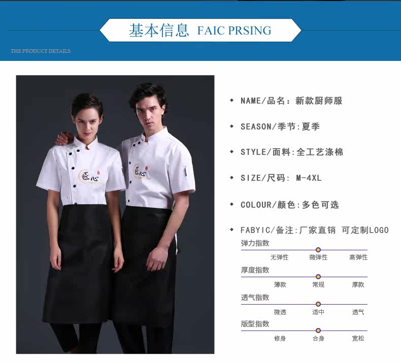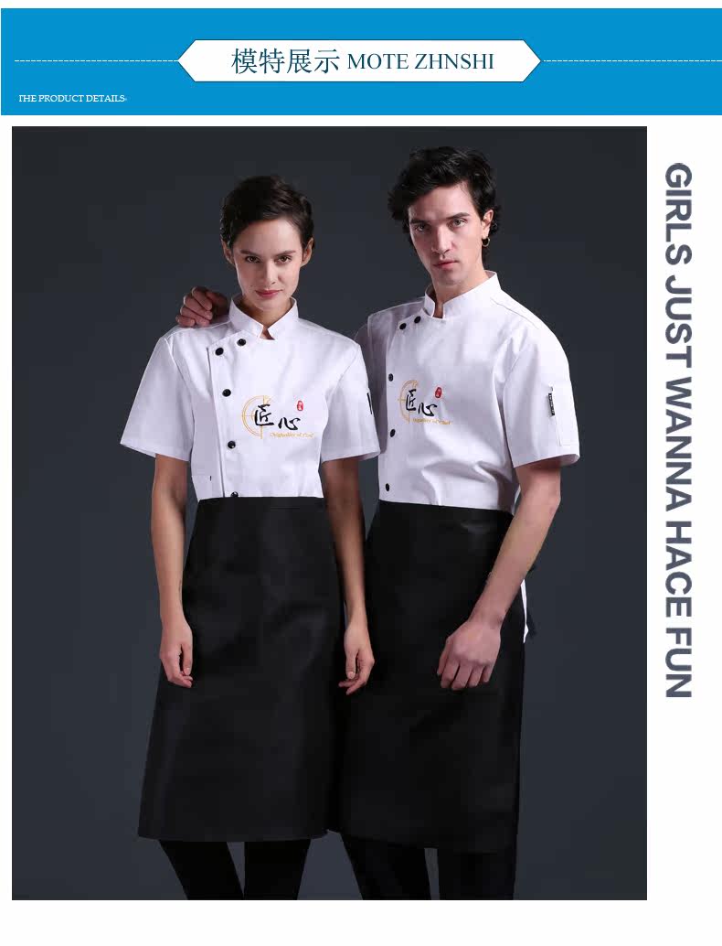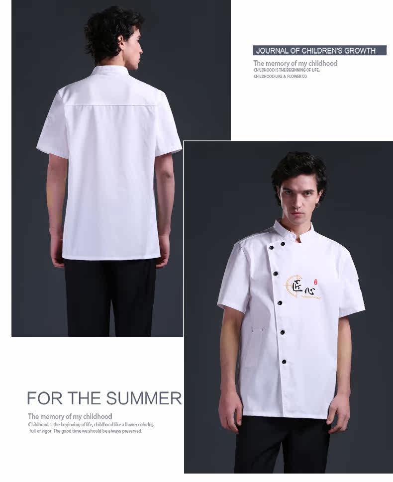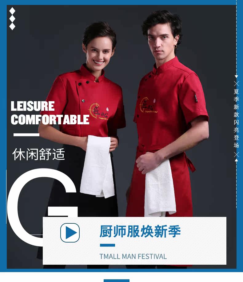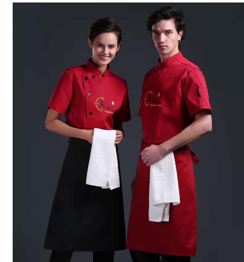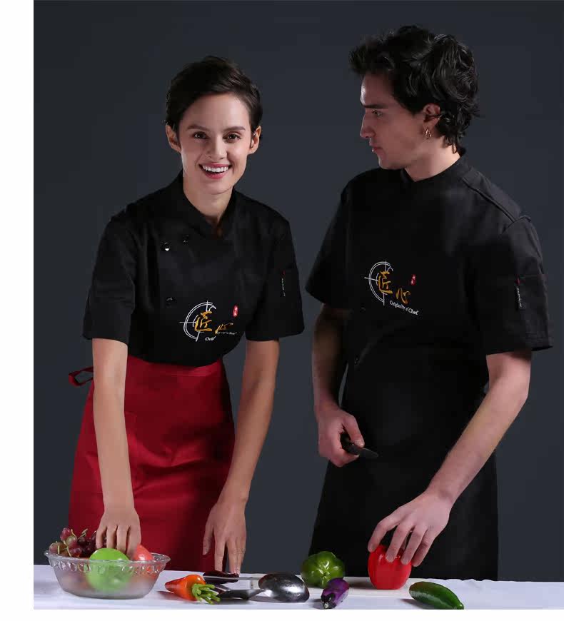 Летний шеф -повар костюм с коротким рукавом мужской дышащий гостиничный ресторан ресторан для барбекю Hotpot Ресторан тонкая задняя кухонная рабочая одежда для женщин