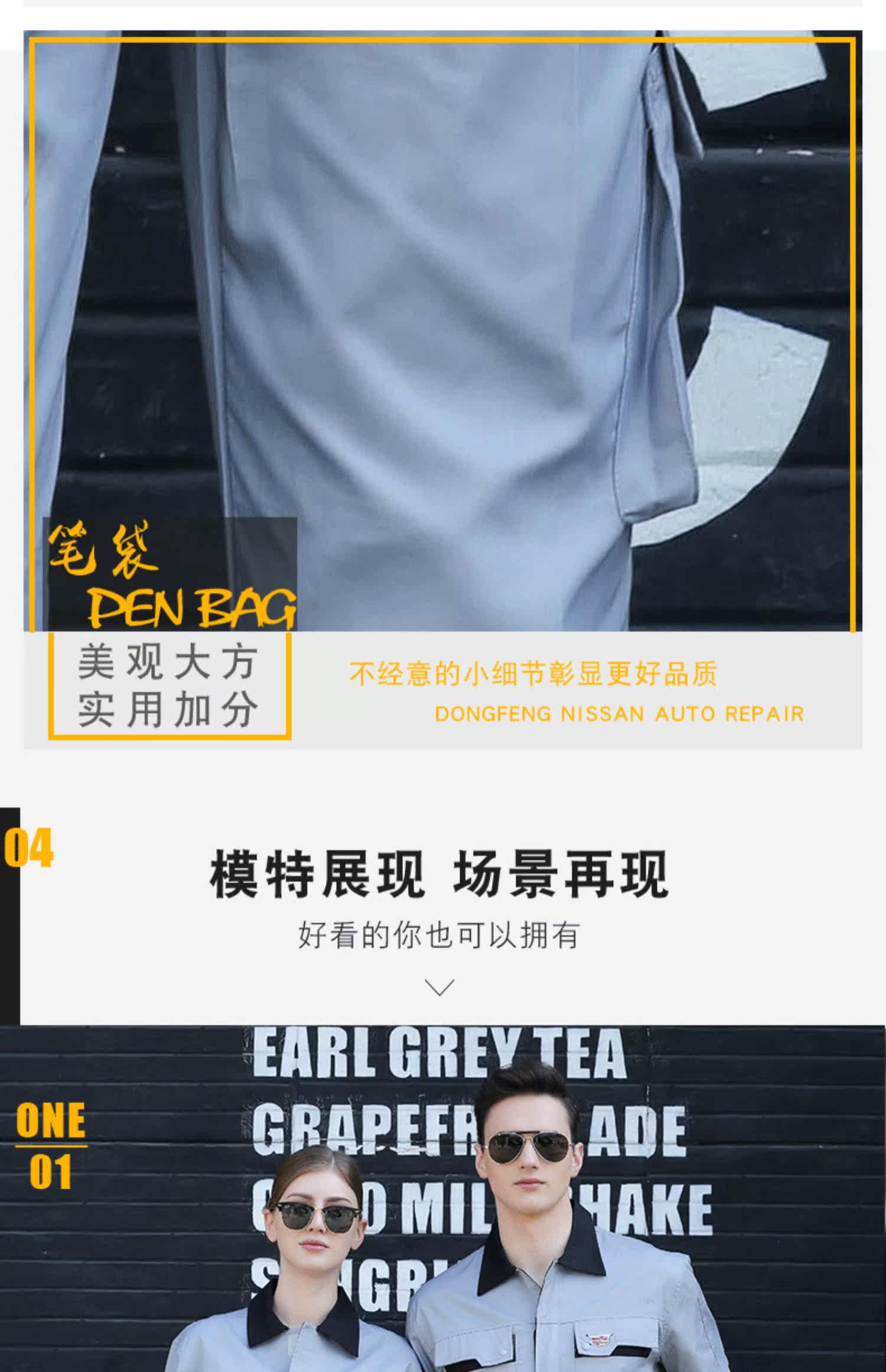 Cadillac Summer Long -sleeved Workwear Set Men's New Short -Shoreved 4S Mopemor Ремонт мастерской после ремонта Auto -Sales