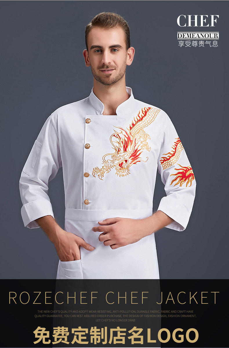 Доминирующий повар дракона Главный рабочий сервер короткий -Нарушение мужской летняя кухня Золотая Дракона Административная кухня черная кухня кухня бабушка