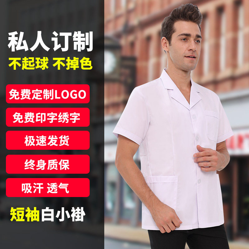 Короткий белый халат, униформа врача, летний химический лонгслив для школьников и студентов для работы
