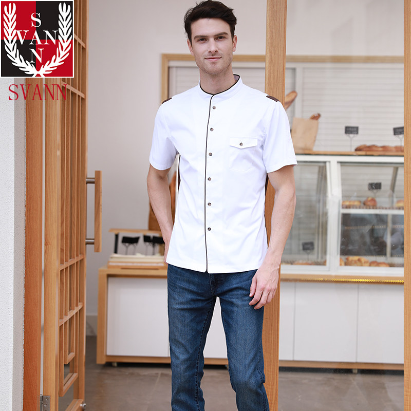 Одежда для шеф-повара, 19 новых летних трикотажных лоскутных тонких дышащих, с короткими рукавами, декоратор для выпечки, рабочая одежда для шеф-повара отеля
