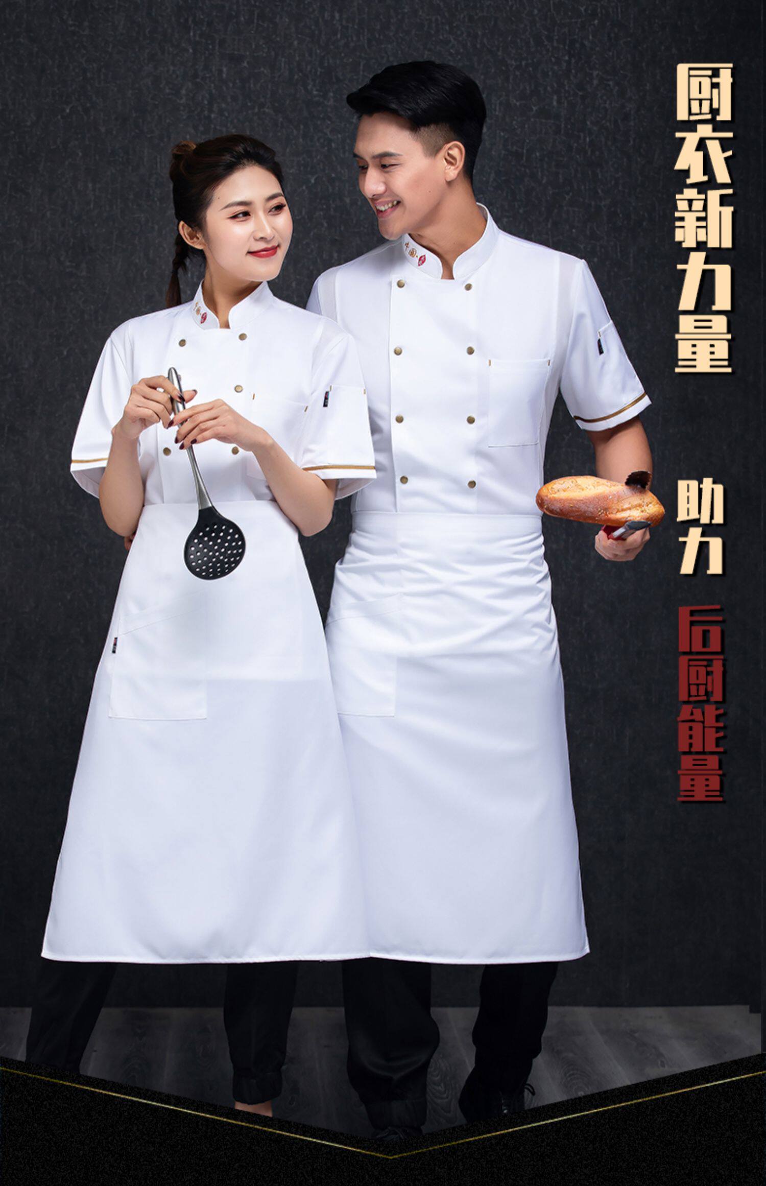- Белый фартук, короткий рукав