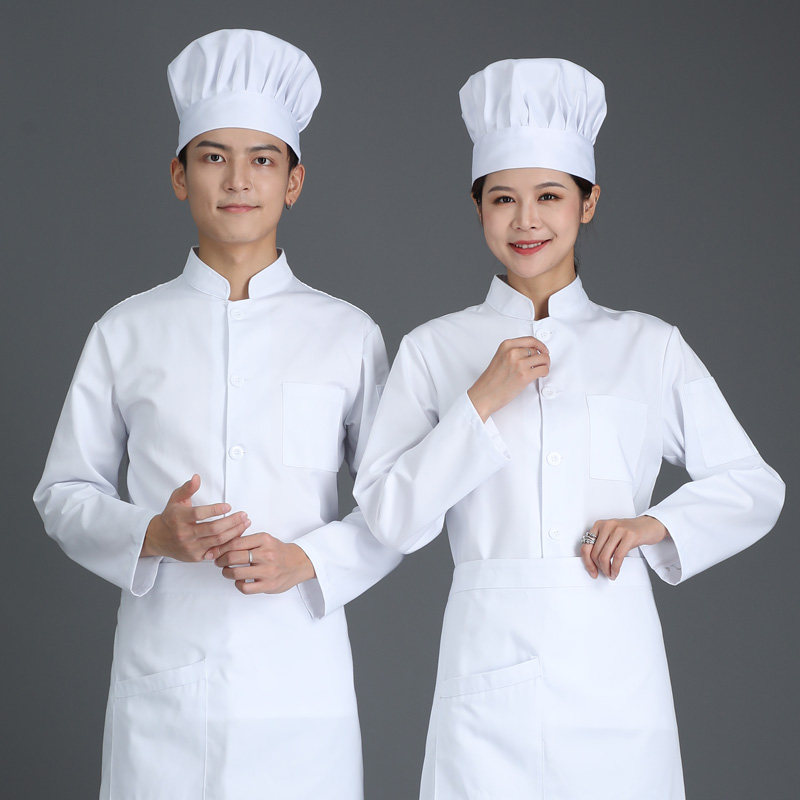 - Белые однобортные длинные рукава + белый фартук + регулируемая шляпа ткани