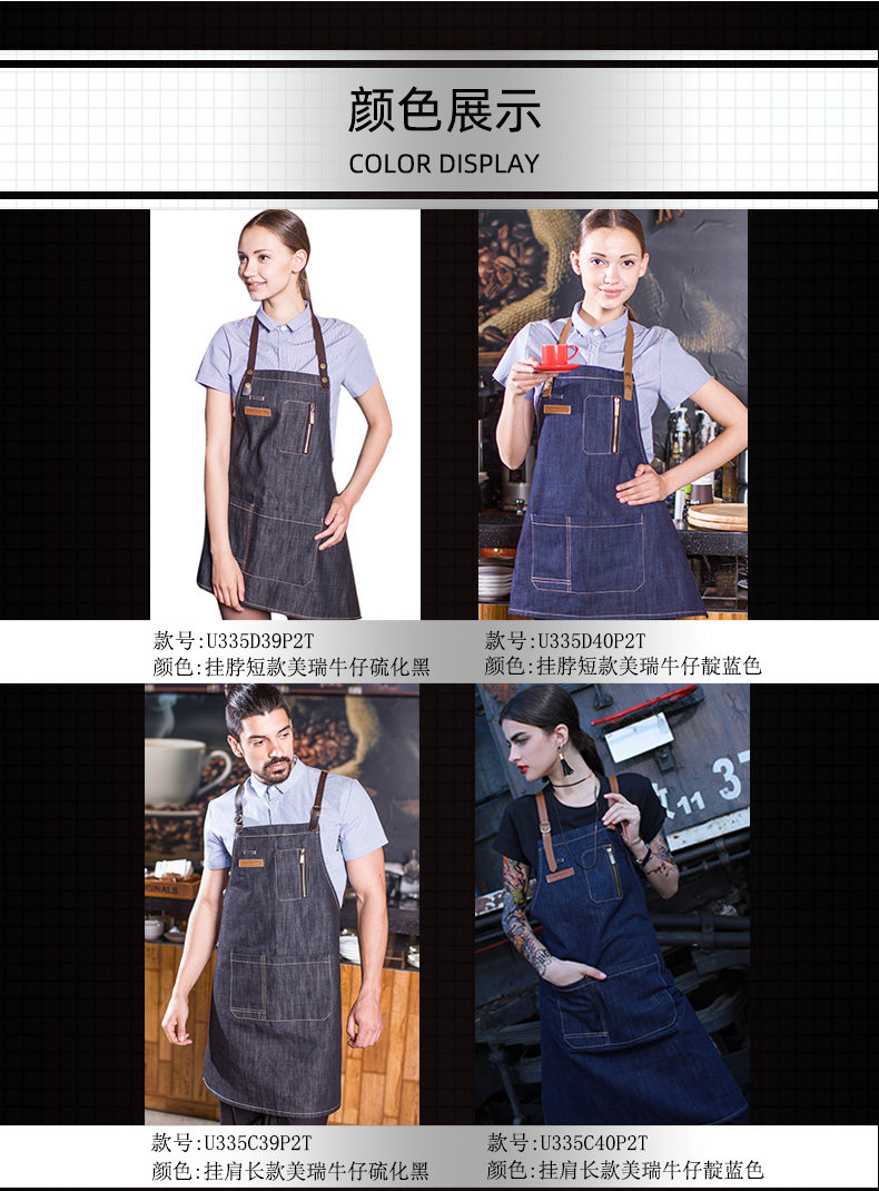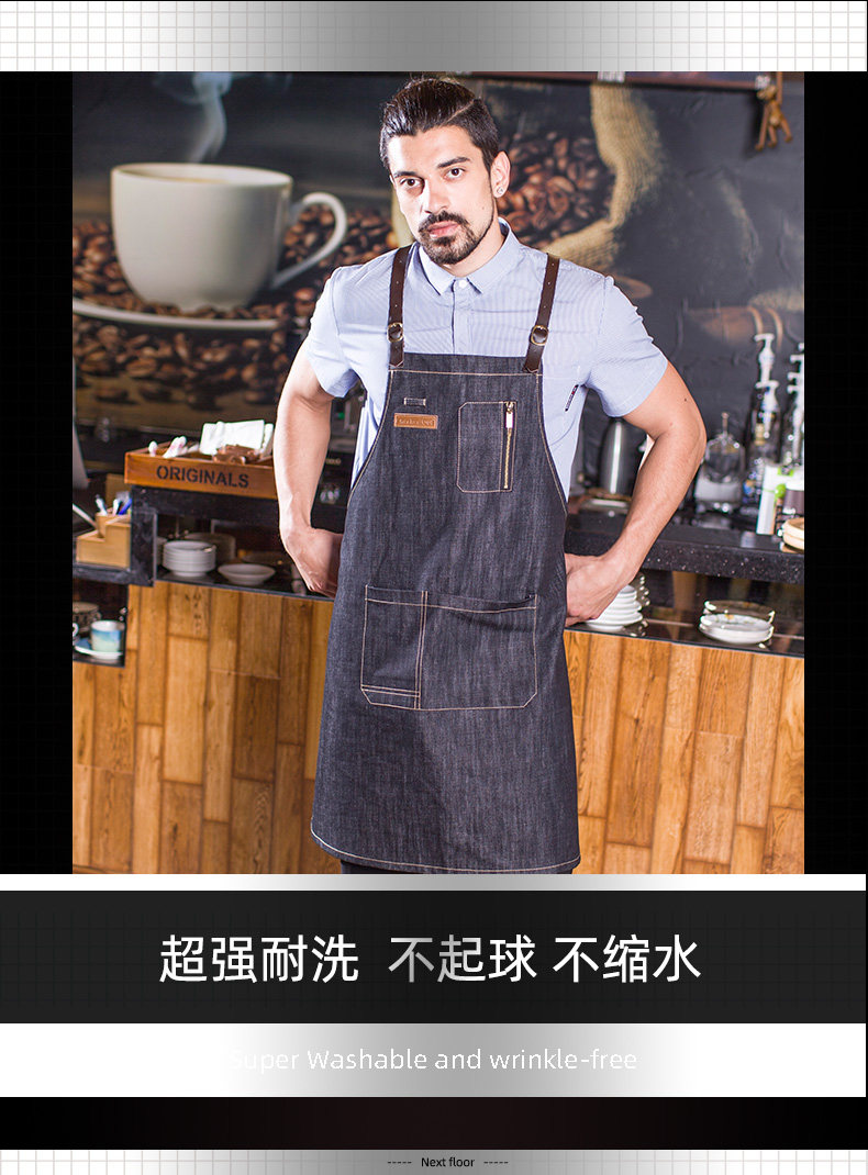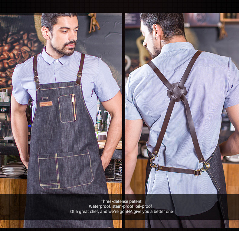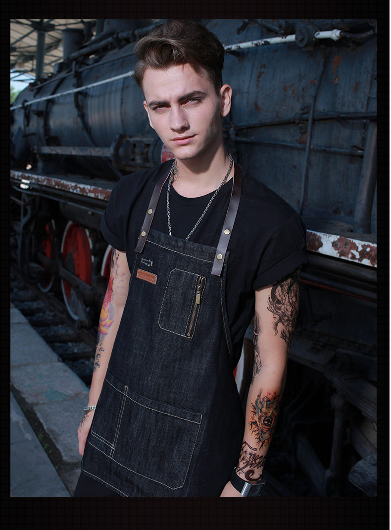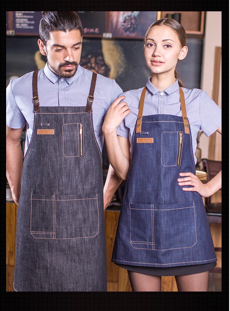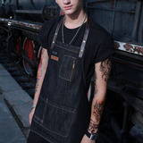 Джинсовый кофейный японский фартук для работы, надевается на плечо, в корейском стиле, делается под заказ