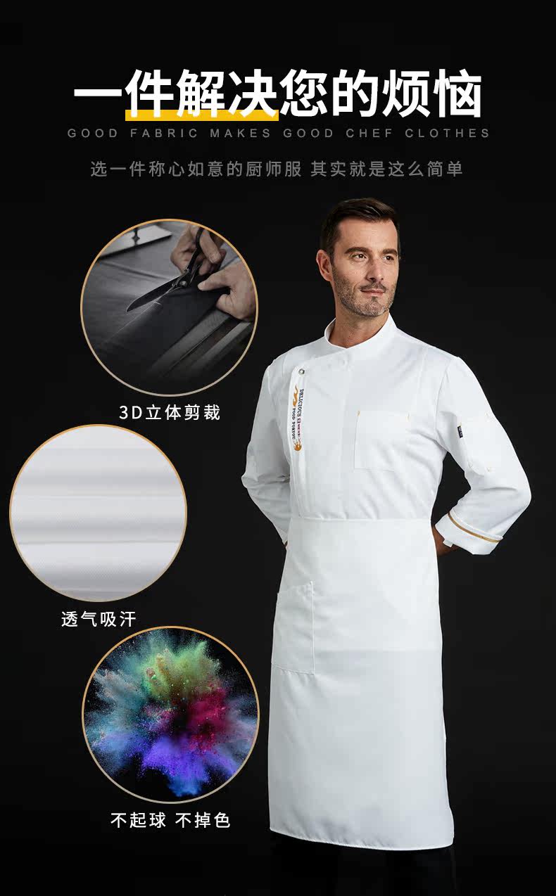 Рабочая одежда для шеф-повара, осенне-зимняя мужская одежда с длинными рукавами для работы на кухне, гостиничная кухня, элитная одежда для шеф-повара в западном ресторане, одежда для шеф-повара в китайском стиле