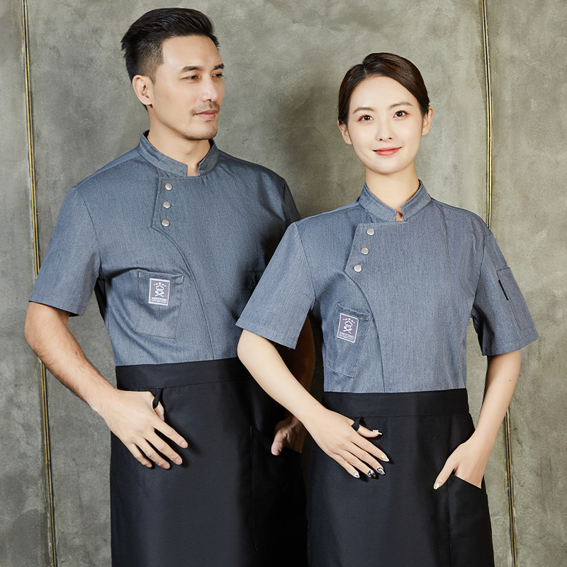 Шеф -повар Работа для одежды с коротким рукавом летний дышащий тонкий стиль обеденный ресторан обратно кухонная выпечка Учитель из комнаты для мужчин и женщин.