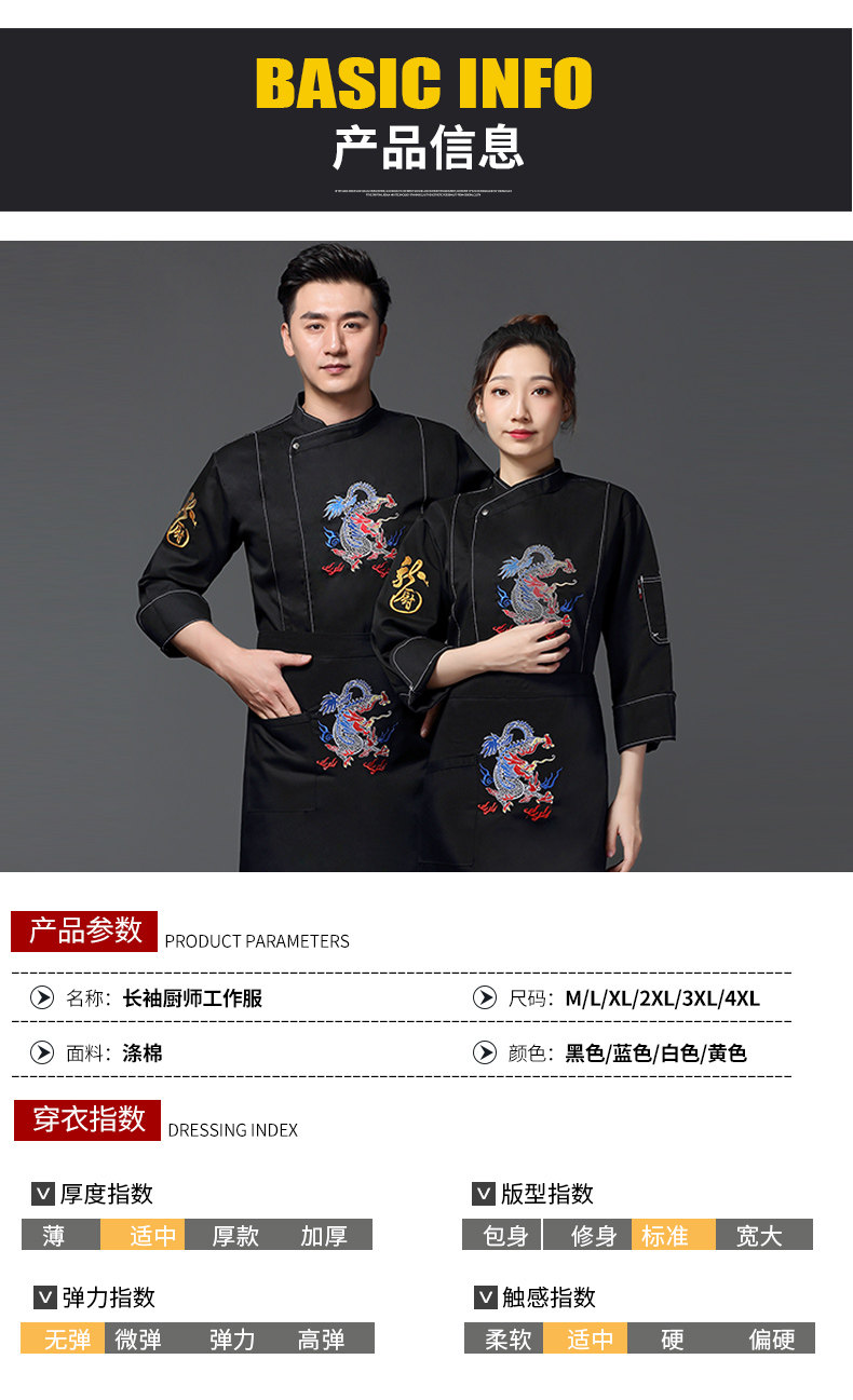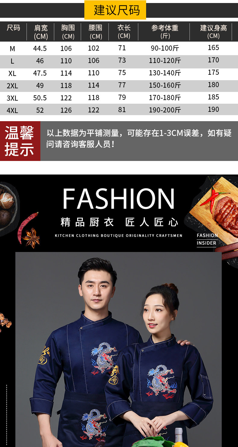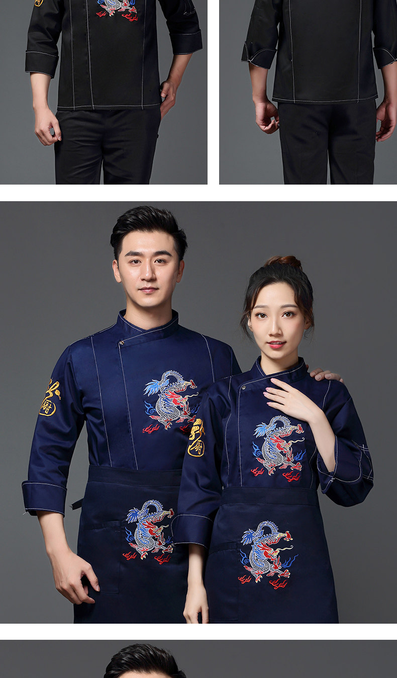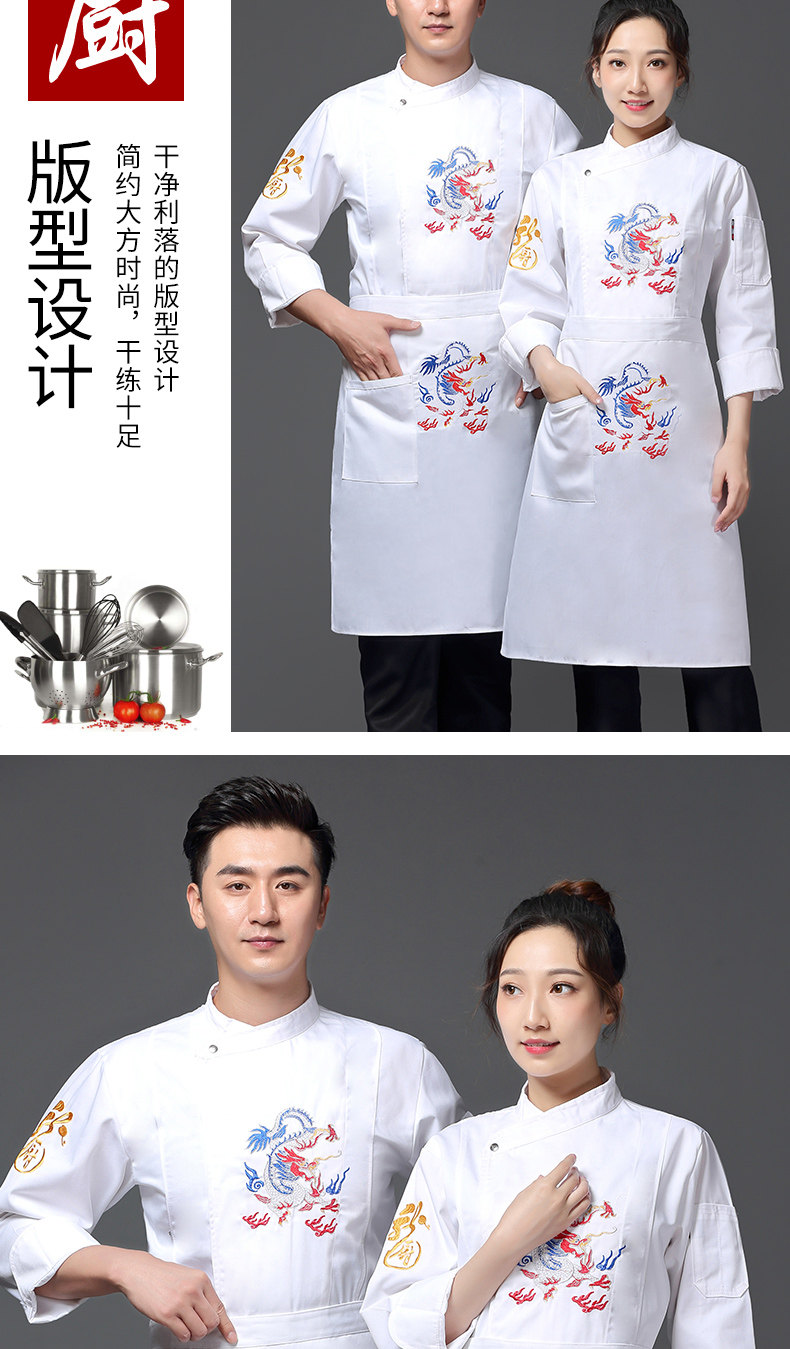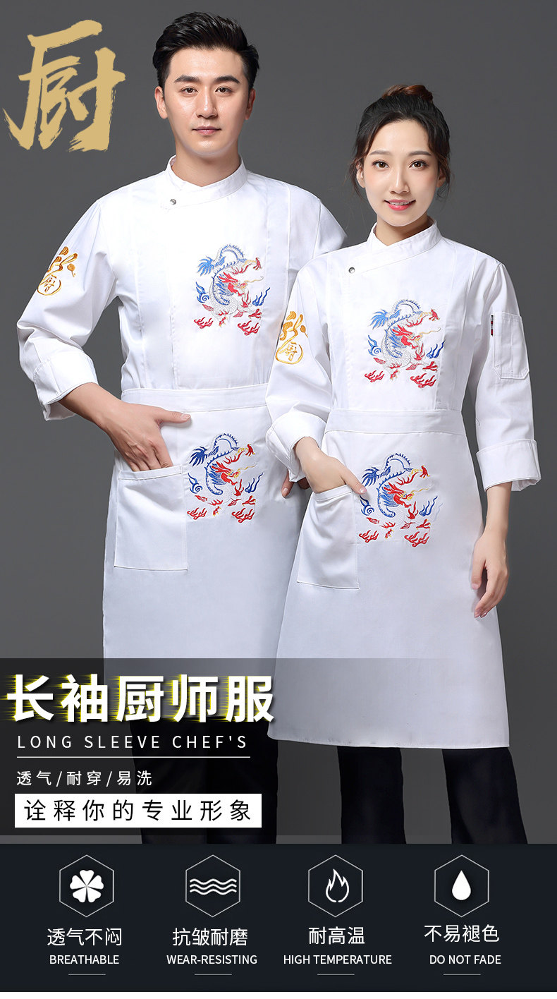 Вышитый повар с вышитым драконом рабочая одежда с длинной осенней и зимней гостиной