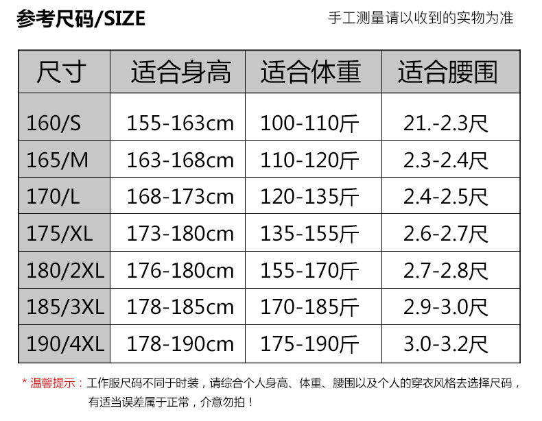 | Размер: | 165/м [подходит для 90-110 котлих], 170/л [подходит для 110-125 котлих], 175/xl 【125-140 Catties】, 180/2xl 【140-160 Catties】, 185/3xl 【160-180 Catties】, 190/4xl 【180-200 котт】 |