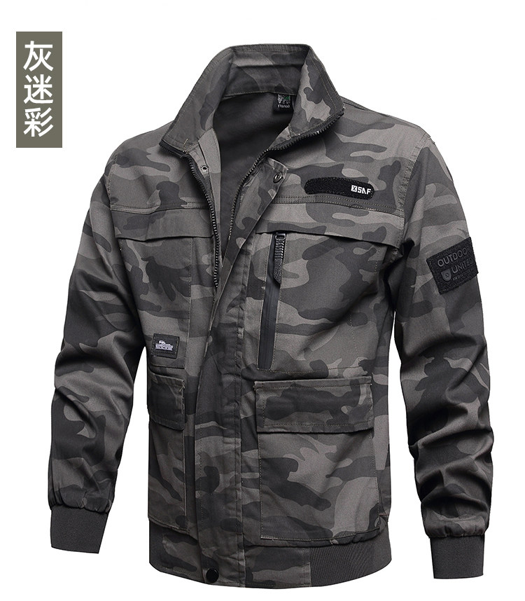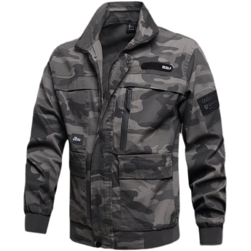 Восьмилетняя магазин, три цвета одежды, весна и осень чистота хлопковая эластичная рабочая одежда, мужские одиночные топы, камуфляжная одежда для защиты труда, утолщенная сварка, устойчивость к износу и антикальцировку