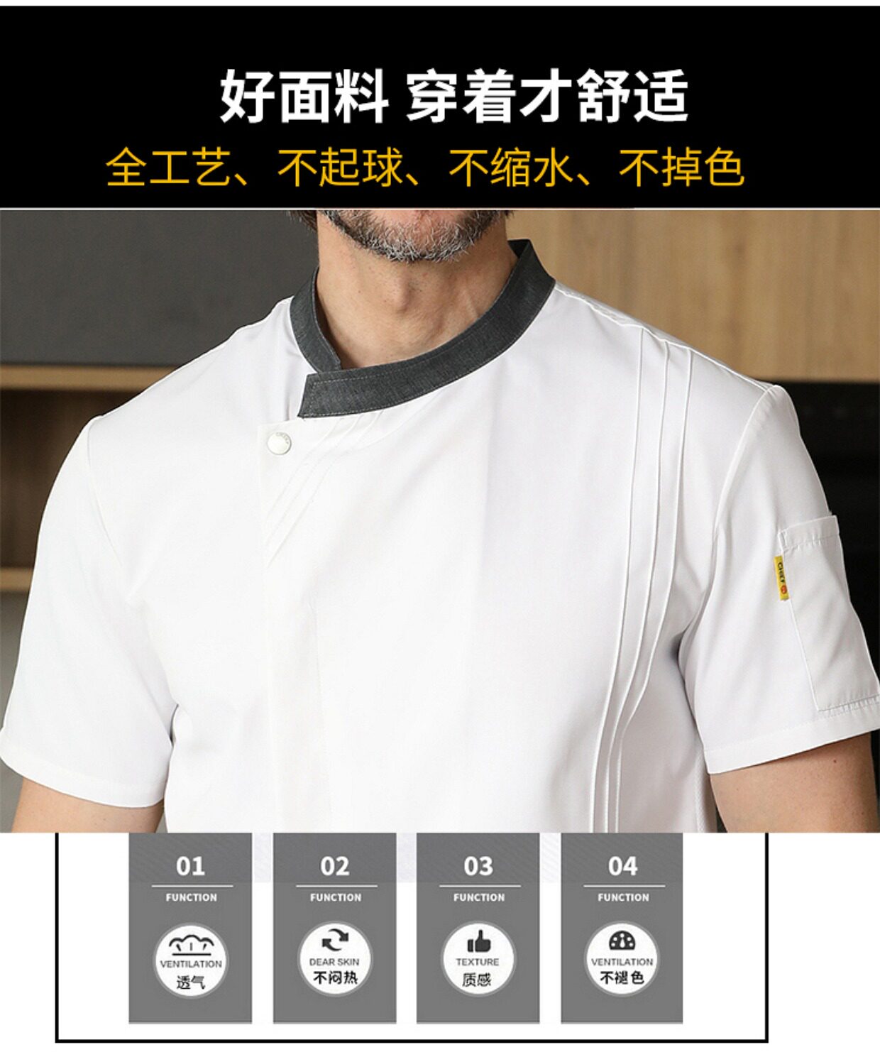 | Цвет: | Белый (короткие рукава шеф -повара), Черный (короткие рукава шеф -повара) |